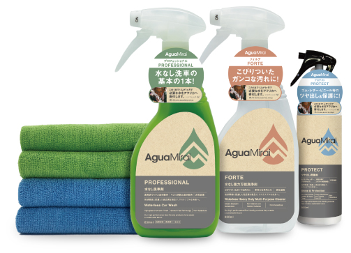 AguaMiraiシリーズ(液剤)には、石油系溶剤や揮発性有機化合物(VOC)が一切含まれておらず、車や人体に配慮された製品となっています。