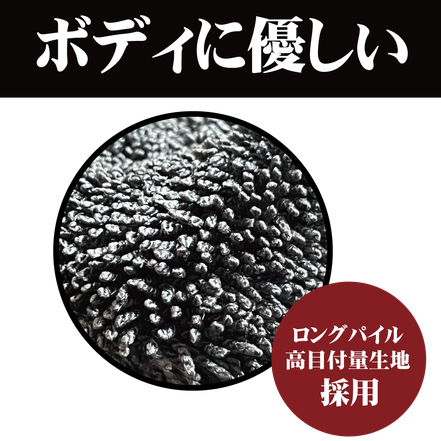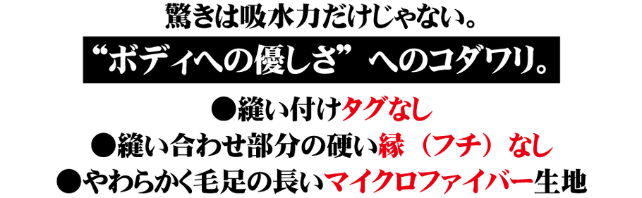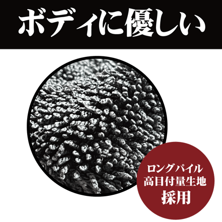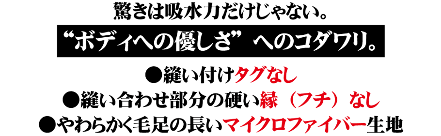 柔らかな触感でボディに優しく、傷の原因になり得る『製品タグ』や、縫い合わせ部分の硬い『縁(フチ)』が無いのも特徴です。